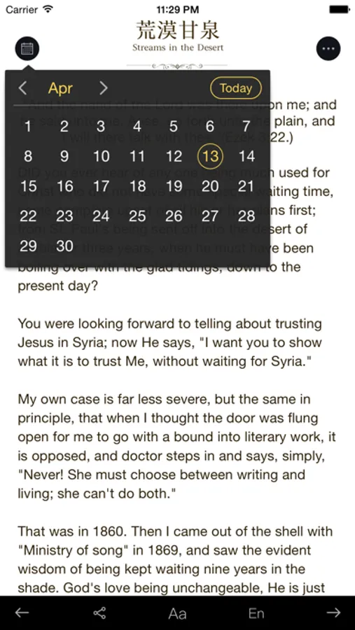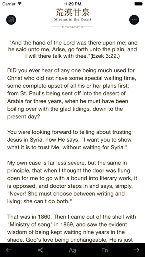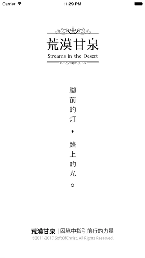 《Streams in the Desert》is a famous Christian spirituality book, first published in 1920. The book is not only very important religious writing in 20th Century ,but also tells moving stories, so many non-christians also read the book. It has helped millions of people gain spiritual strength in their predicament.