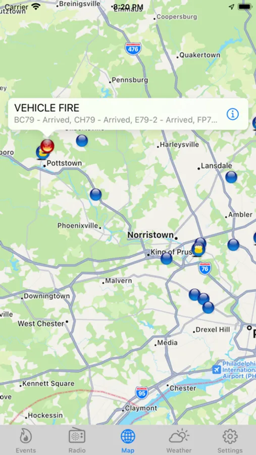 - Map showing current location of all fire, traffic, and other emergency incidents