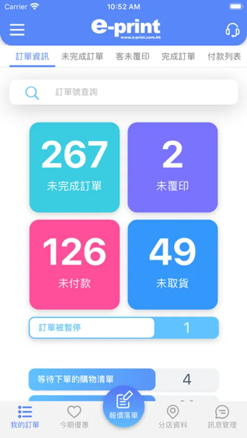 • 查詢訂單狀態,輕鬆跟進訂單印刷情況。
