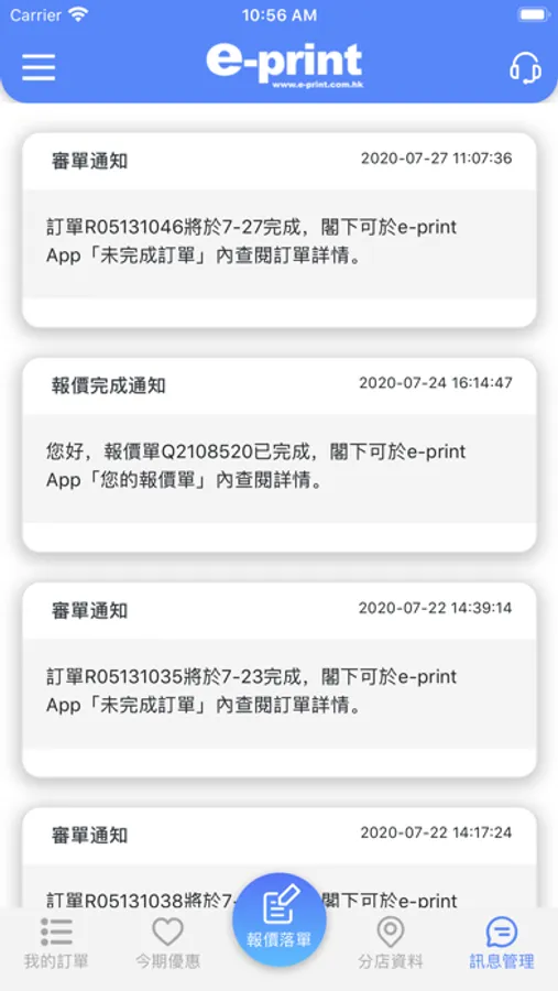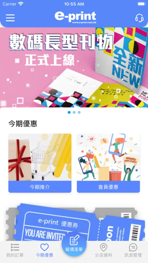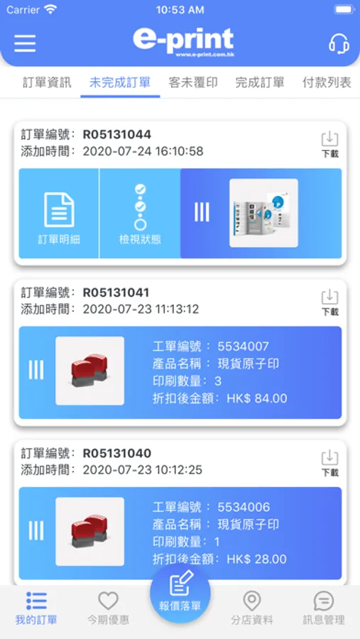e-print 為各位顧客帶來全新體驗,滿足您對落單服務的需求。我們提升現有e-print app應用程式功能,令您不受地域限制,隨時隨地都可以於手機上進行落單、查詢訂單、付款、提交入數紙、在線查詢等。您亦可透過e-print app應用程式查詢訂單狀態,查看稿件,令您一app在手,毋須周圍走。