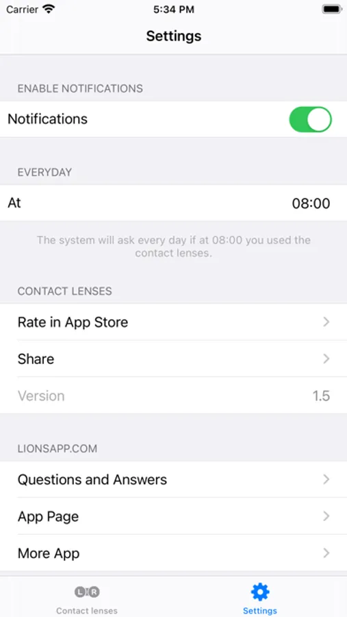 - Turn on notifications and the system will ask you every day if you have used the lens with a notification; in this way you can always keep track of their use.