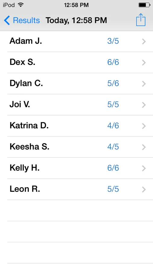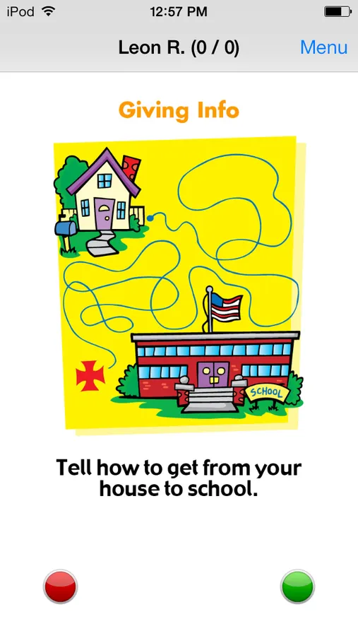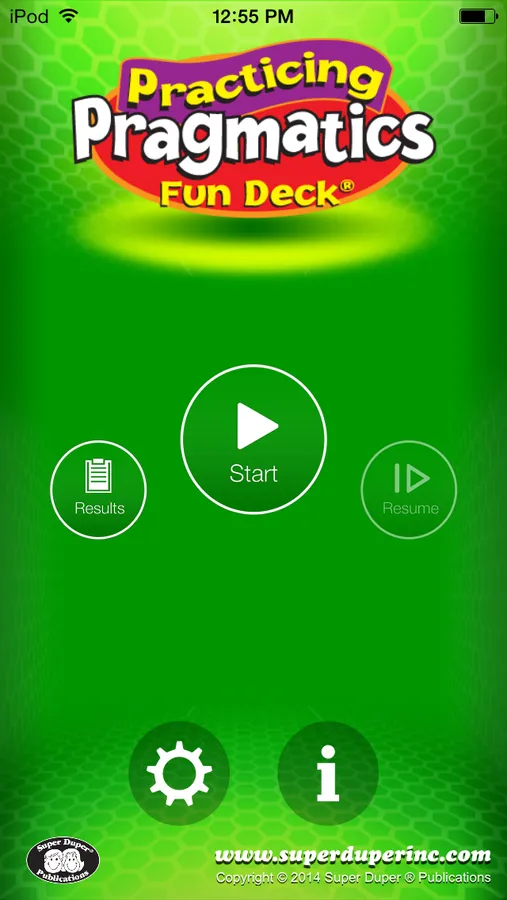 This App is simple to use — each student looks at an illustration, and either reads the prompt or touches the screen to listen to the prompt. The student then gives a verbal response. After each answer, tap the green (correct) or red (incorrect) button to score the student’s verbal response. Move to the next card by sliding the card currently on the display screen to the side. To move to the next player, tap the bar at the top of the screen and select a name. You can also advance cards and players automatically by selecting the Auto-Advance option in the Game Options menu. You can leave a game temporarily and return to it later by selecting Pause Game from the menu. To return to the game, select Continue Game from the main menu. When you finish, view the results in a graph, and print or email your data.
