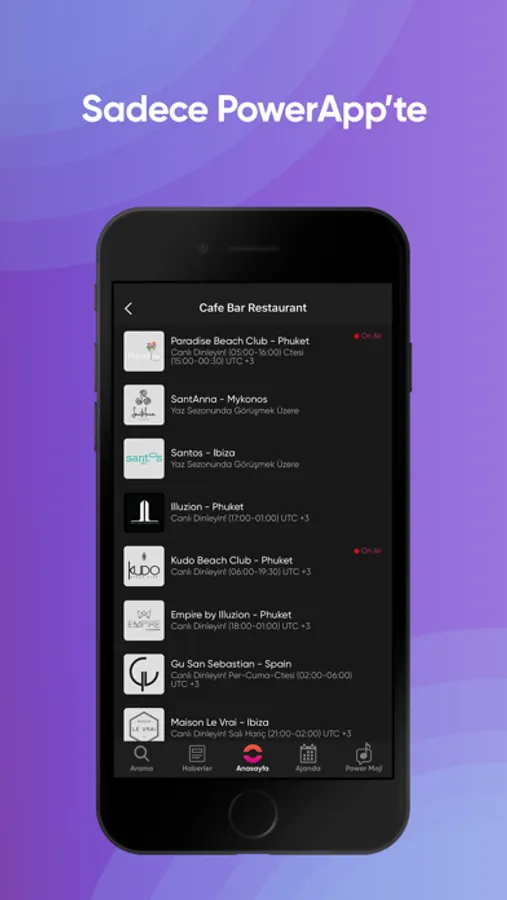 Cafe Club On Air ile Dünyanın heryerindeki en iyi cafe, club ve restoranlardan canlı müzik yayınları sadece PowerApp'de