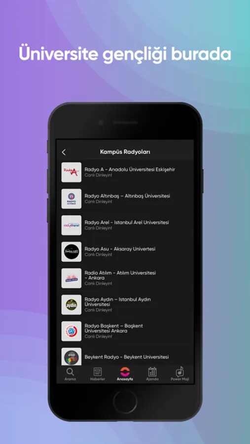 Üniversite gençliği Kampüs radyoları ile Sadece PowerApp'de