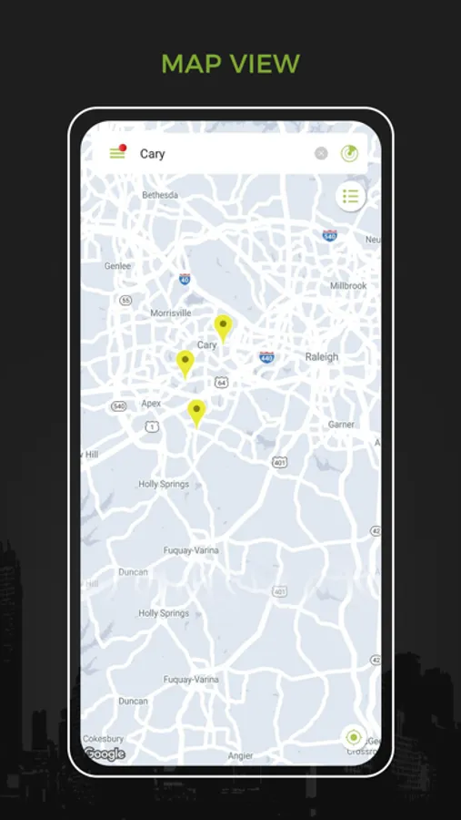 • View results in list or map format