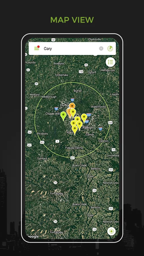 • Perform a radius search from anywhere on the map