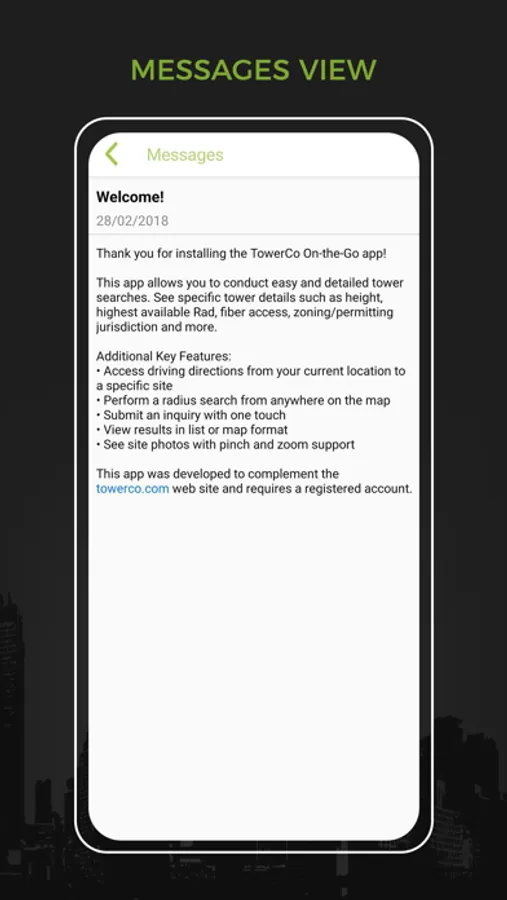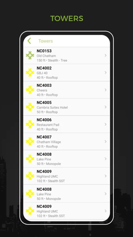 Conduct easy and detailed tower searches with this fast and powerful app. See specific tower details such as height, highest available Rad, fiber access, zoning/permitting jurisdiction and more.