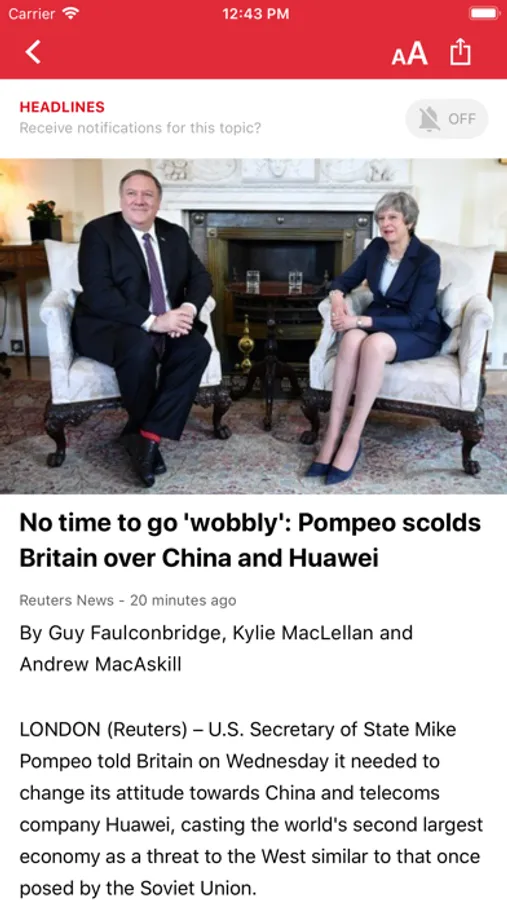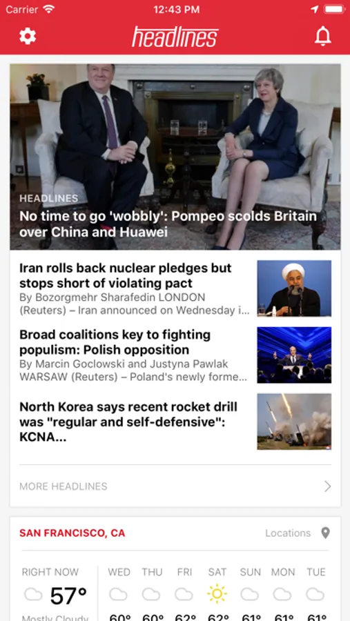 Headlines brings daily stories from around the World + US & UK: news, weather and sports on your mobile device with a clean, intuitive design - perfect for any news junkie.