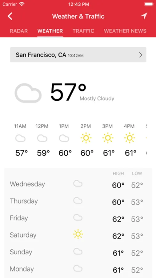 > Today’s local and national weather forecast via a front page widget as well as more details in the weather section + traffic alerts