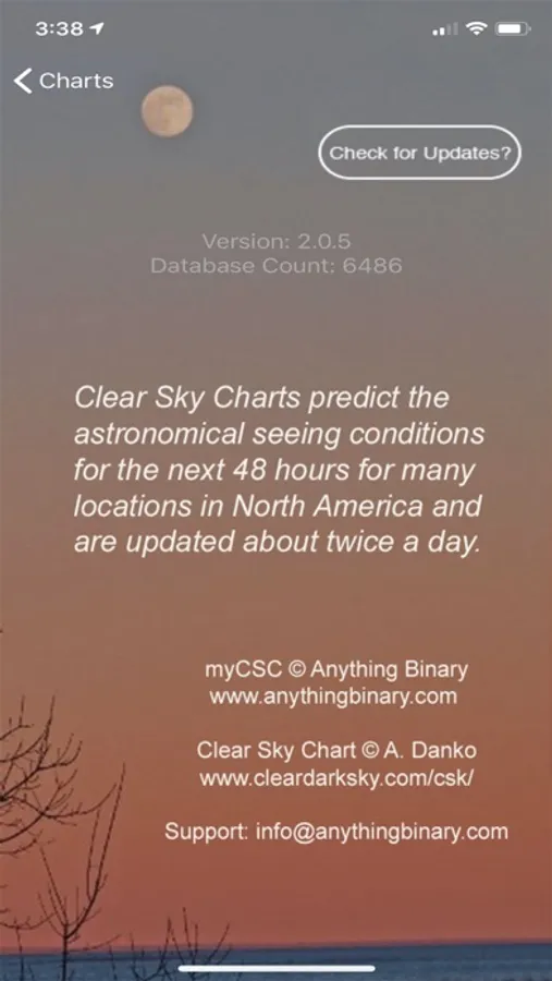 This app is no longer free. A portion of every copy purchased will go to Attilla Danko to help support the ongoing operation of the Clear Sky Charts site.