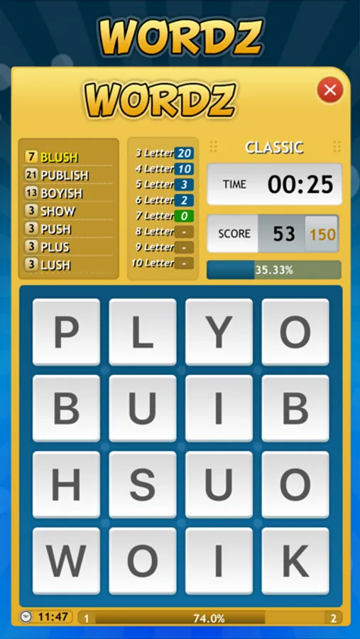 This is not your typical laid-back word puzzle game. The game board is never the same, so each game is a different and unique challenge. Wordz will require your reaction time as well as your wits in order to succeed against the clock and your online opponents.