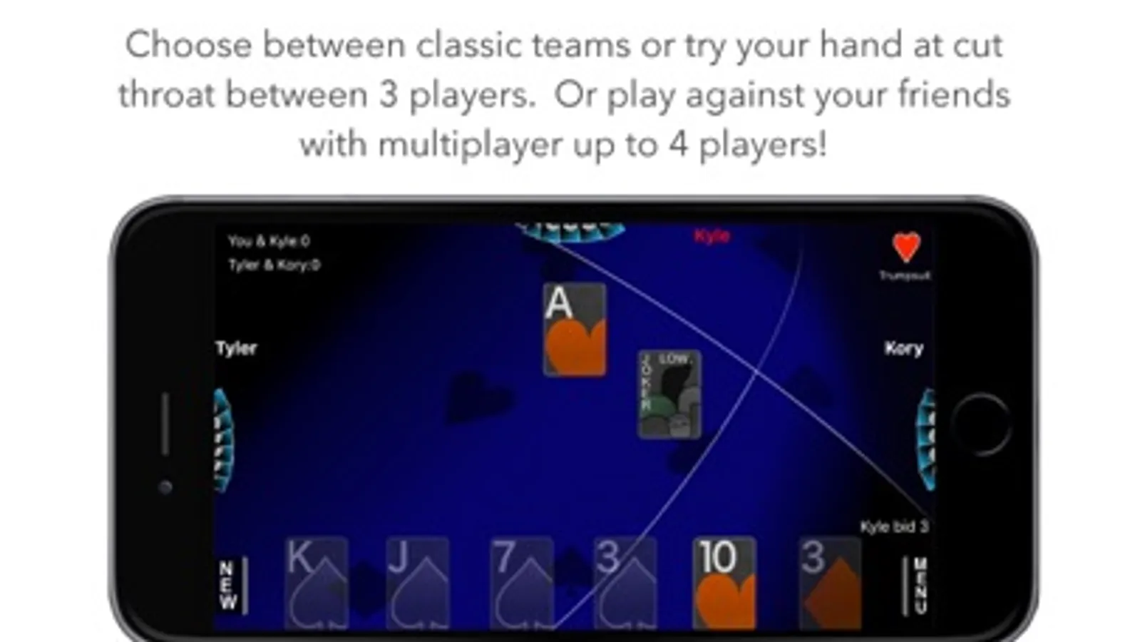 You can now play multiplayer through Game Center included. This allows for 2 to 4 players to play together in any version of Pitch! You can also use the built in voice chat feature to talk amongst your friends!