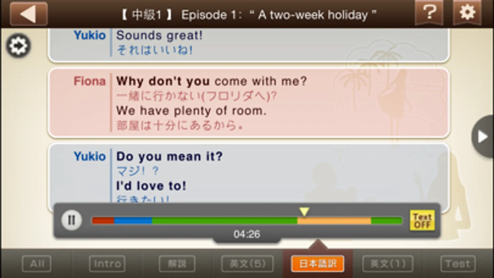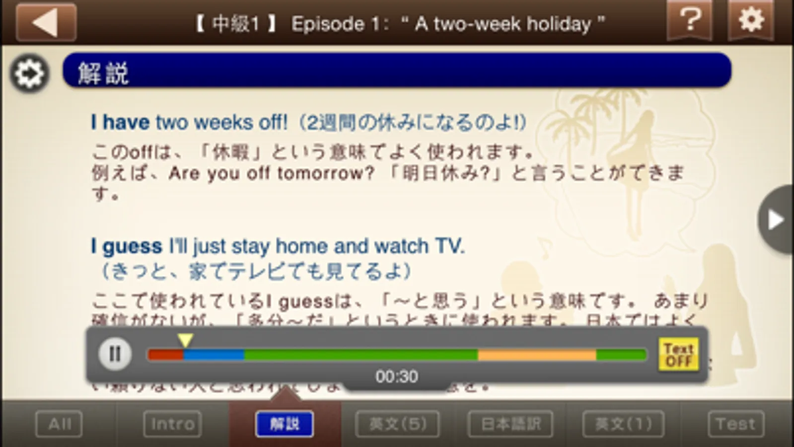 ・1文ずつの再生 (解説文をタップ)