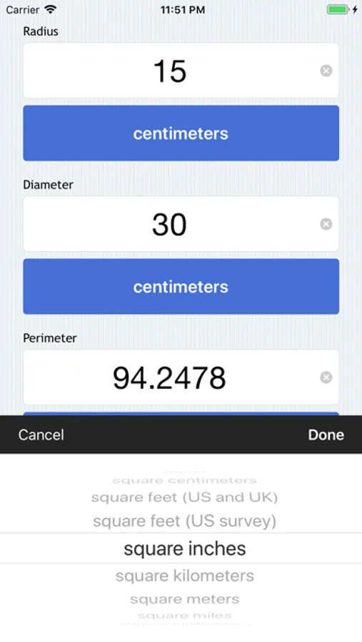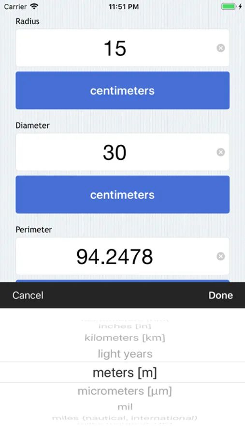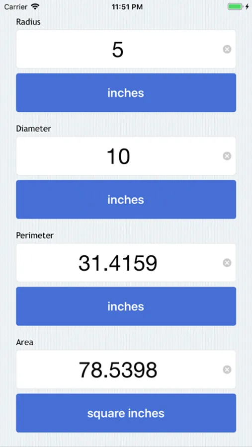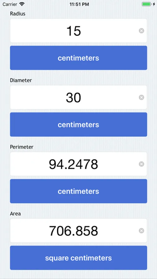 Circle Calculator allows you to calculate radius, diameter, perimeter, and area given any value.
