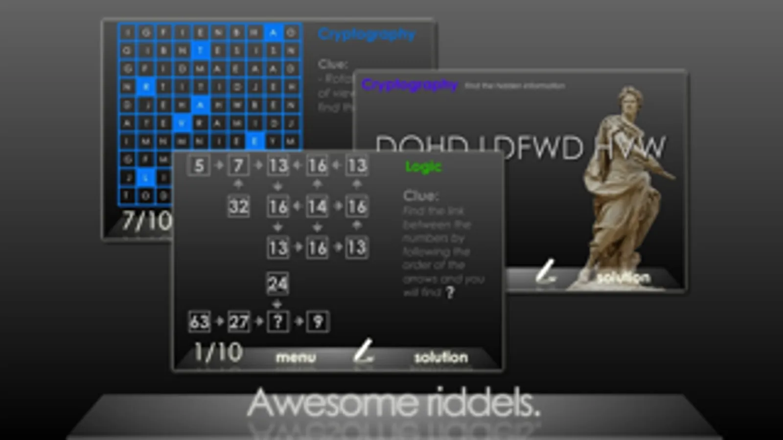 It consists in several levels. Each level contains 10 riddles quite hard to solve.