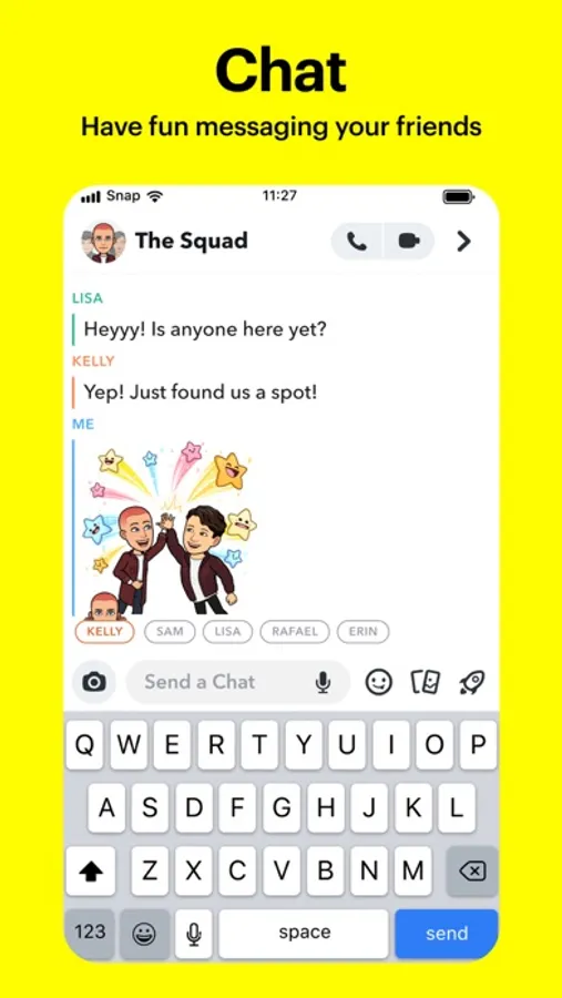 • Express yourself with Lenses, Filters, Bitmoji and more!