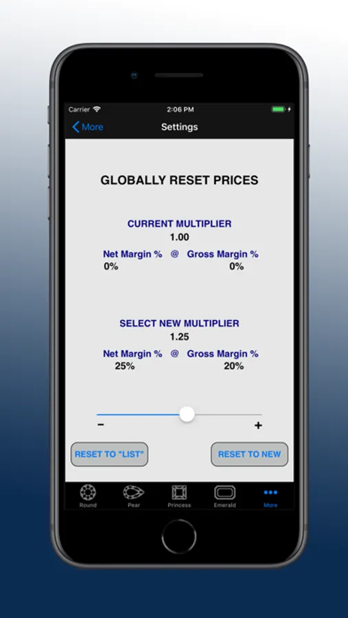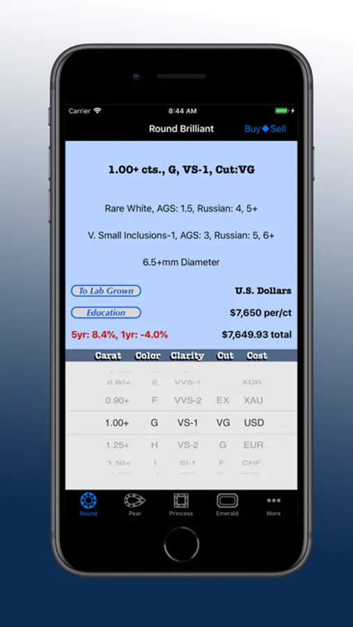 Follow Wholesale Diamond Prices in 13 Mediums of Exchange and by 8C's!! The 4C's of Cut Shape, Carat, Color, Clarity, plus "Cut Grade", "Cost", "Change in Value" over the last Year and 5 years and "Creation"! Appreciation Rates (or Depreciation) are calculated on every Mined Diamond Classification, revealing which diamond(s) are maintaining value in your localized market. This App quickly calculates every diamond's total cost, % change-in-value in each selected currency, and exchange to Troy ounces of gold - the universal unit of utility!