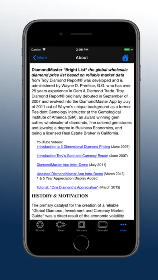 ◆ 4 GRADING SYSTEMS SIMULTANEOUSLY DISPLAYED: Gemological Institute of America (GIA), International Diamond Council (IDC), American Gem Society (AGS), and Russian Grading System (TU). DiamondMaster is the only diamond pricing App that displays all 4 international standards!
