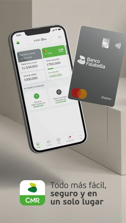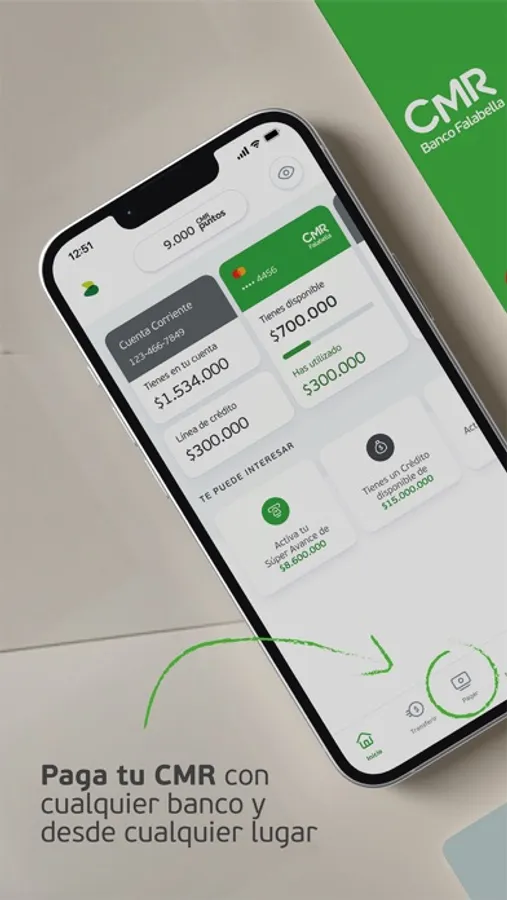 · Pagar tu Tarjeta CMR con cualquier banco y tus créditos o cuentas con tu Cuenta Banco Falabella
