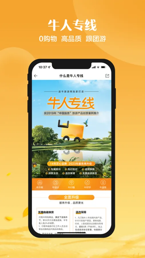 持续提升及控制旅游产品质量,不断创造和升级高品质的服务供给,途牛先后打造了高品质跟团游“牛人专线”等一系列产品品牌。“牛人专线”作为途牛首个独立产品品牌,诞生于2009年,在在线跟团游市场中,通过高质量地接、行程优化、深度资源采购、特色餐饮等众多举措,大幅提升游客跟团出游体验。截至2021年第一季度,牛人专线已累计服务超540万人次出游,客户满意度达到97%,更有超过五百条超99% 满意度线路产品供游客选择。