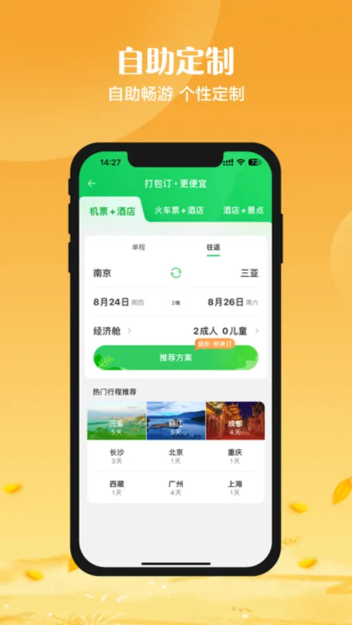 伴随着用户出游趋势的个性化、碎片化,途牛建设了全品类动态打包系统。通过动态打包,客人可以自主定制、任意组合出行方式、住宿、玩乐等,让产品供给与需求的连接高效地满足了客户多样化出游需求,同时实现了“打包订,更便宜”的产品优势。