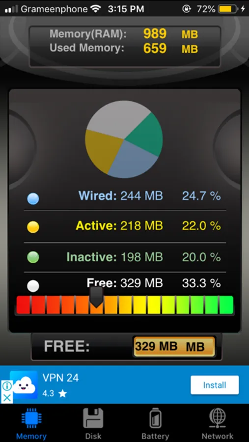 • Visualization of Wired, Active, Inactive, Free memory allocation.