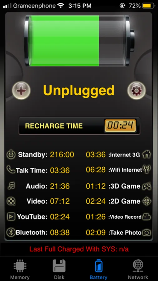 Note: Please discharge you battery at level 10% and complete full charge to adjust battery health first time.