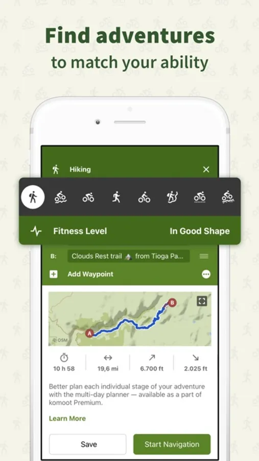 Get the route perfect for your sport—be it smooth asphalt for your road bike, singletracks for your mountain bike, silent cycling paths for touring or natural trails for your hikes. Plan down to the last detail with at-your-fingertips info like surface, difficulty, distance and elevation profile.