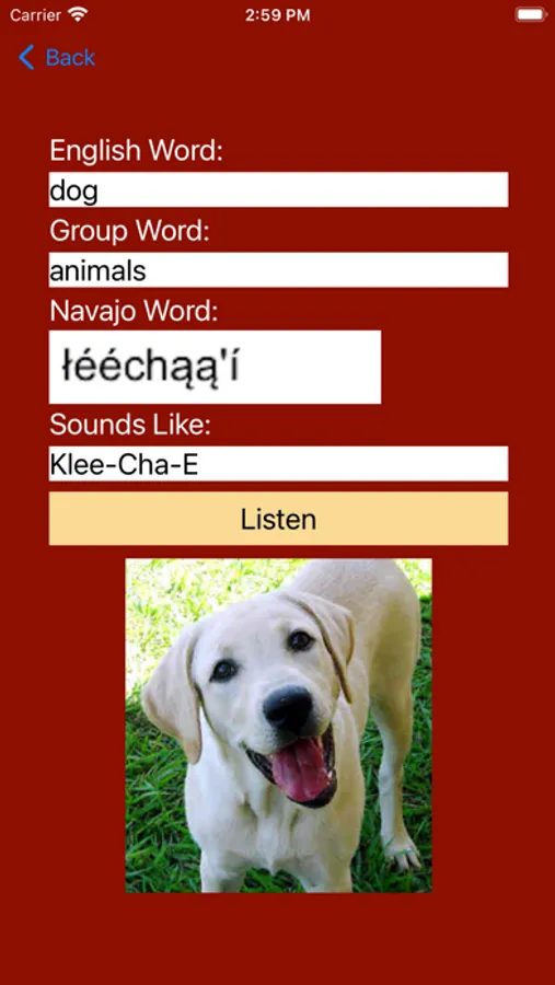 As a user friendly option, the "Speak Navajo" application provides image and sound files. The image option is very useful in providing a visual that links to the Navajo word. In addition, a sound file is provided for every Navajo word that allows the user to hear the Navajo word being spoken.
