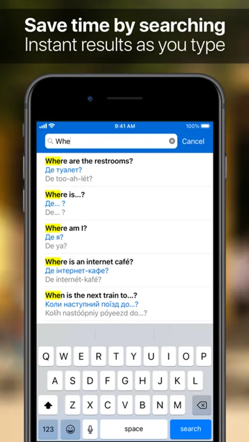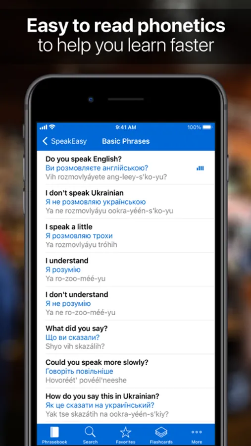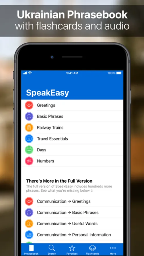 • 120 essential travel phrases with both Ukrainian and phonetic translations plus audio. 610 phrases are available in the Complete Edition.