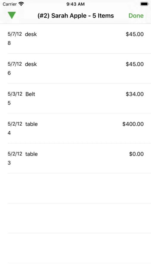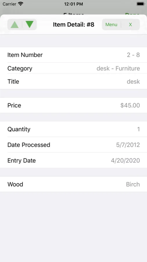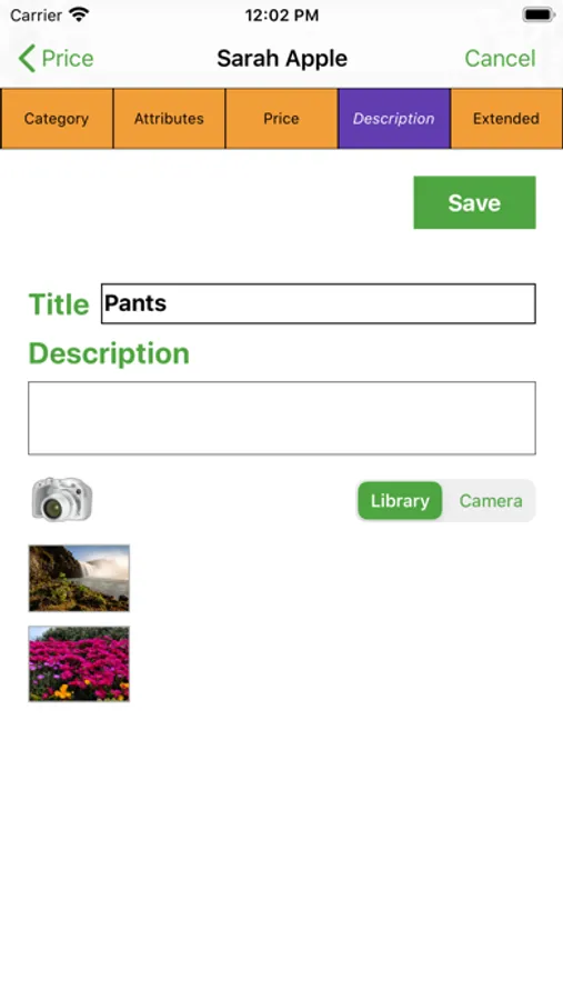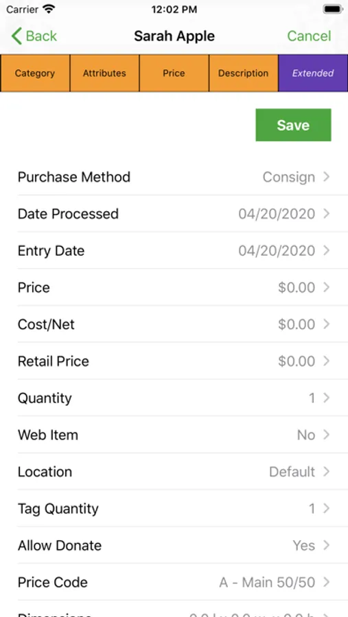 The item entry interface includes several design features that are optimized for a touch-screen, smaller display for popular mobile devices. A list of the 20 most commonly used categories speeds up item entry considerably. A graphical trend analysis tool calculates and displays pricing information based on the category and brand of the item being entered, based on the past year's sales data. Adding photographs to items is simple and quick both when using images from the device's photo library or when taking new pictures with the device's camera. This app also allows users to print tags for inventory, to email item lists directly to accountholders, and to view an account's transaction history.