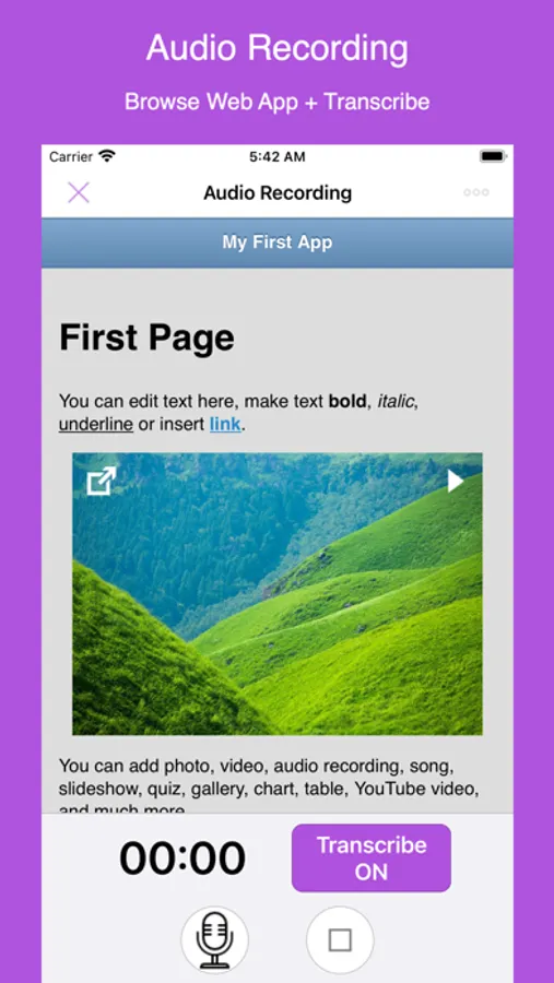 All generated apps are powered by jQuery Mobile Framework. The format of the output includes HTML, javascript, css, jpg, gif, mp3, m4a and mp4.