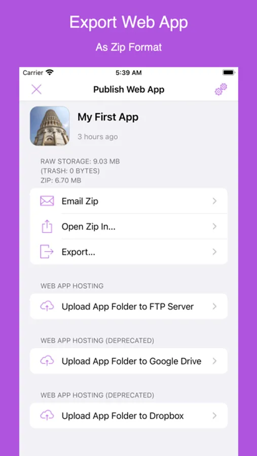 * Import zip file of web app files