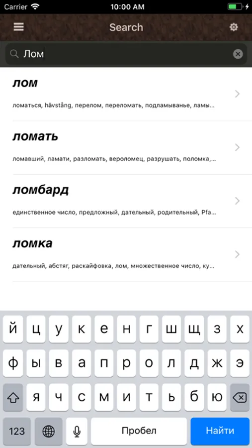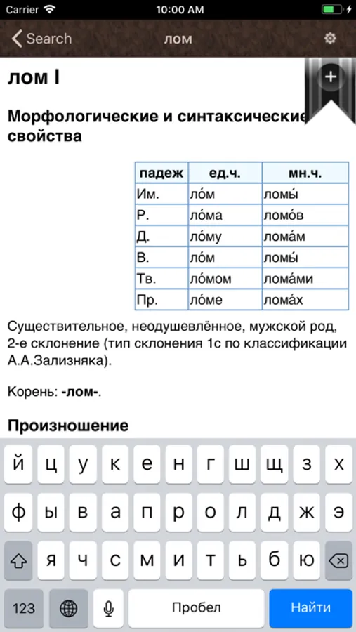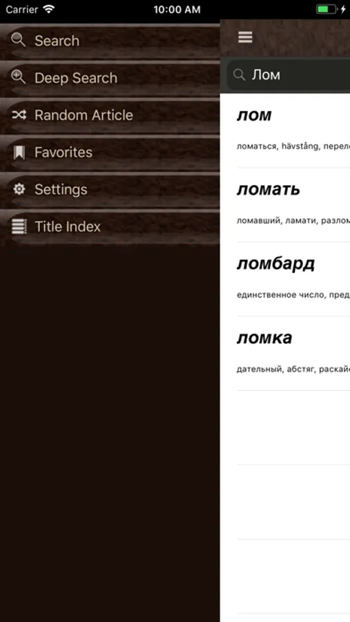 A Russian Language Dictionary iOS app. Contains more than 18 thousand word definitions. Works offline. No internet connection is necessary once App is downloaded. All words are 100 percent Russian and are composed in Russian. This app is appropriate for those seeking to learn or already fluent in the Russian language.