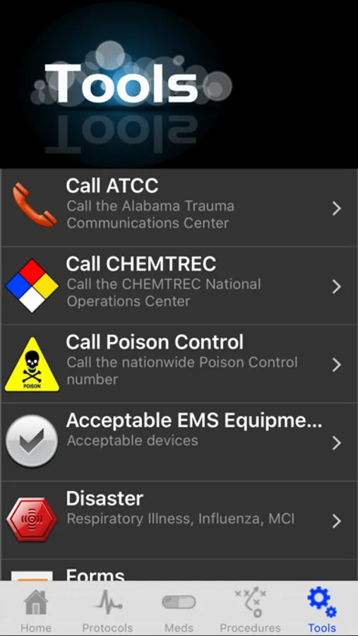 Fully indexed iOS edition of the protocols. Additional features include one touch dialing to Poison Control, and CHEMTREC. GPS position for calling in air evac, shallow menu structure for fast recall of treatment protocols and medications.