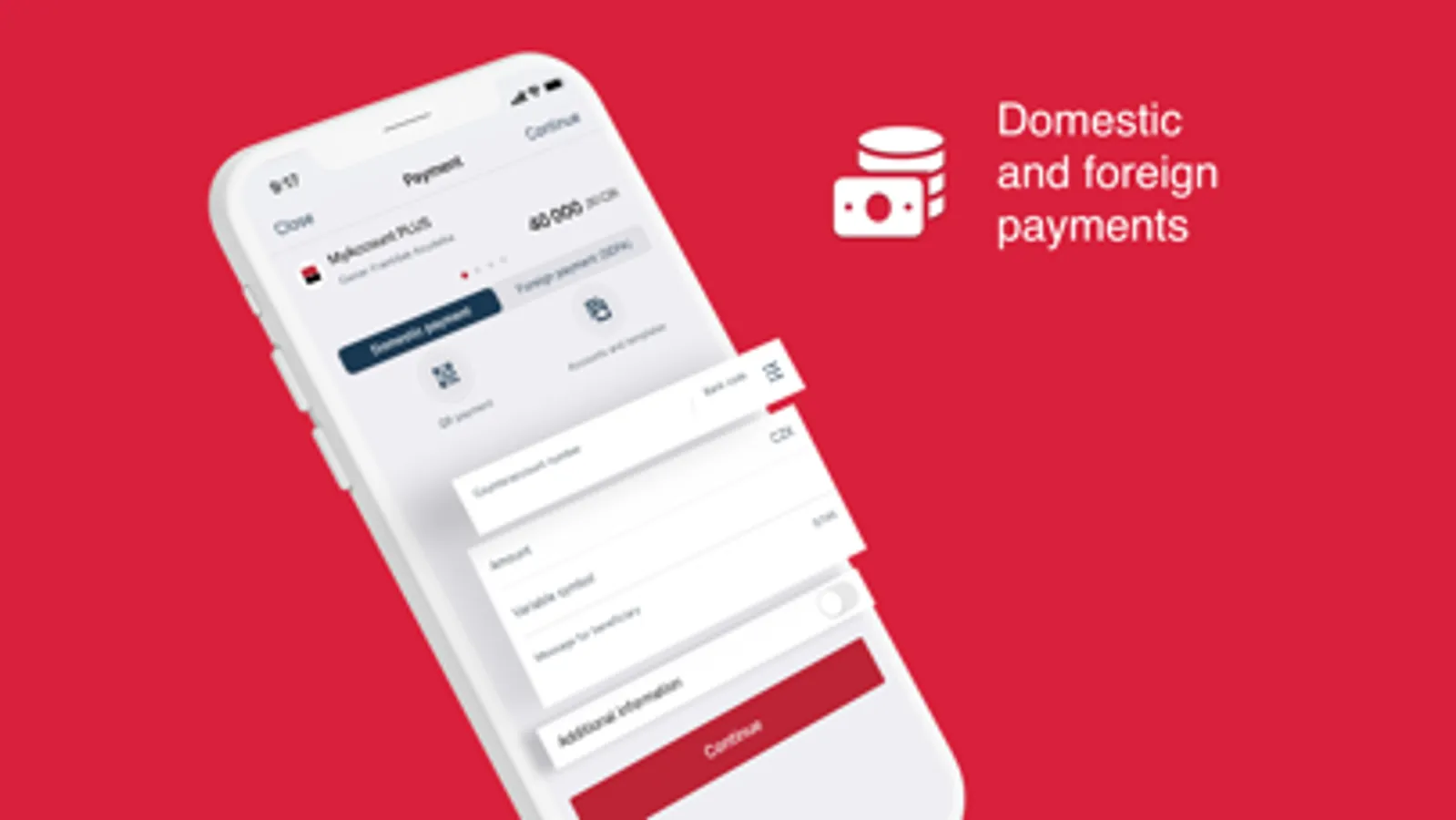 Simply send the transfer payment order to any counter-account. You can use all your payment templates from the internet banking MojeBanka or simply scan a QR code to process a payment.