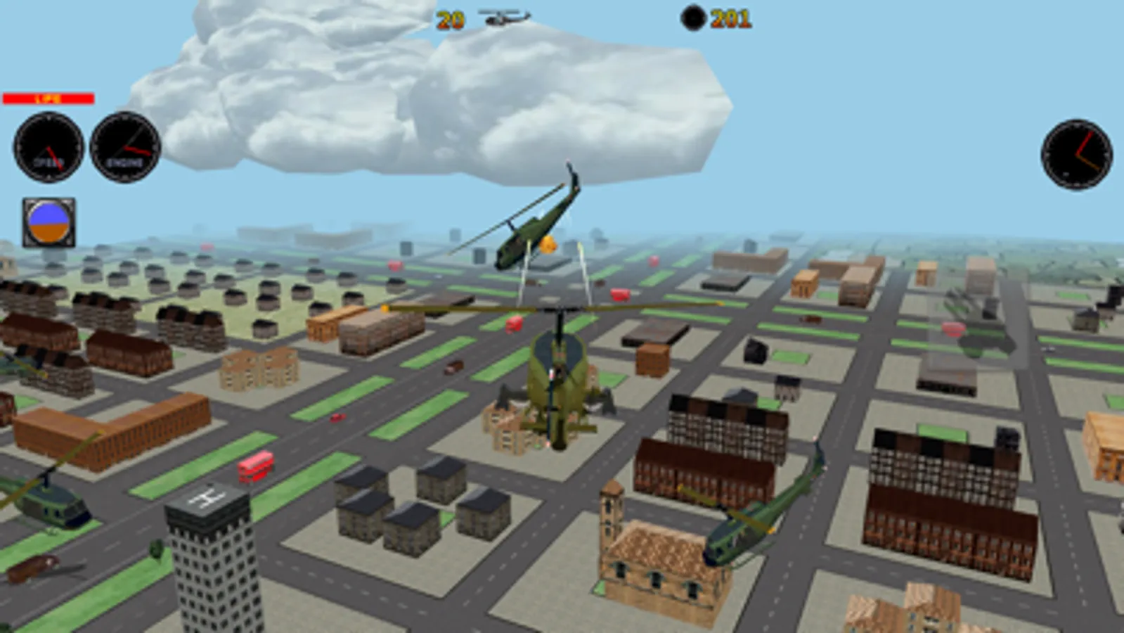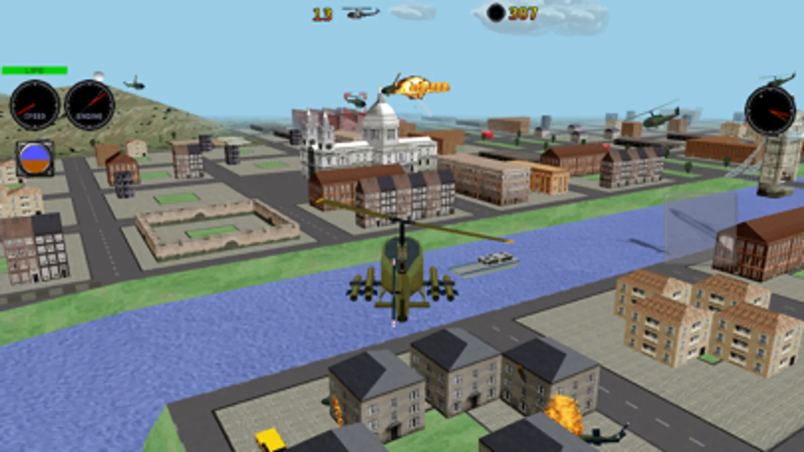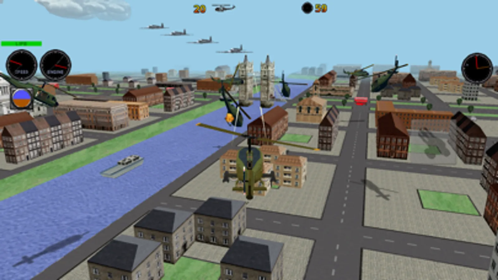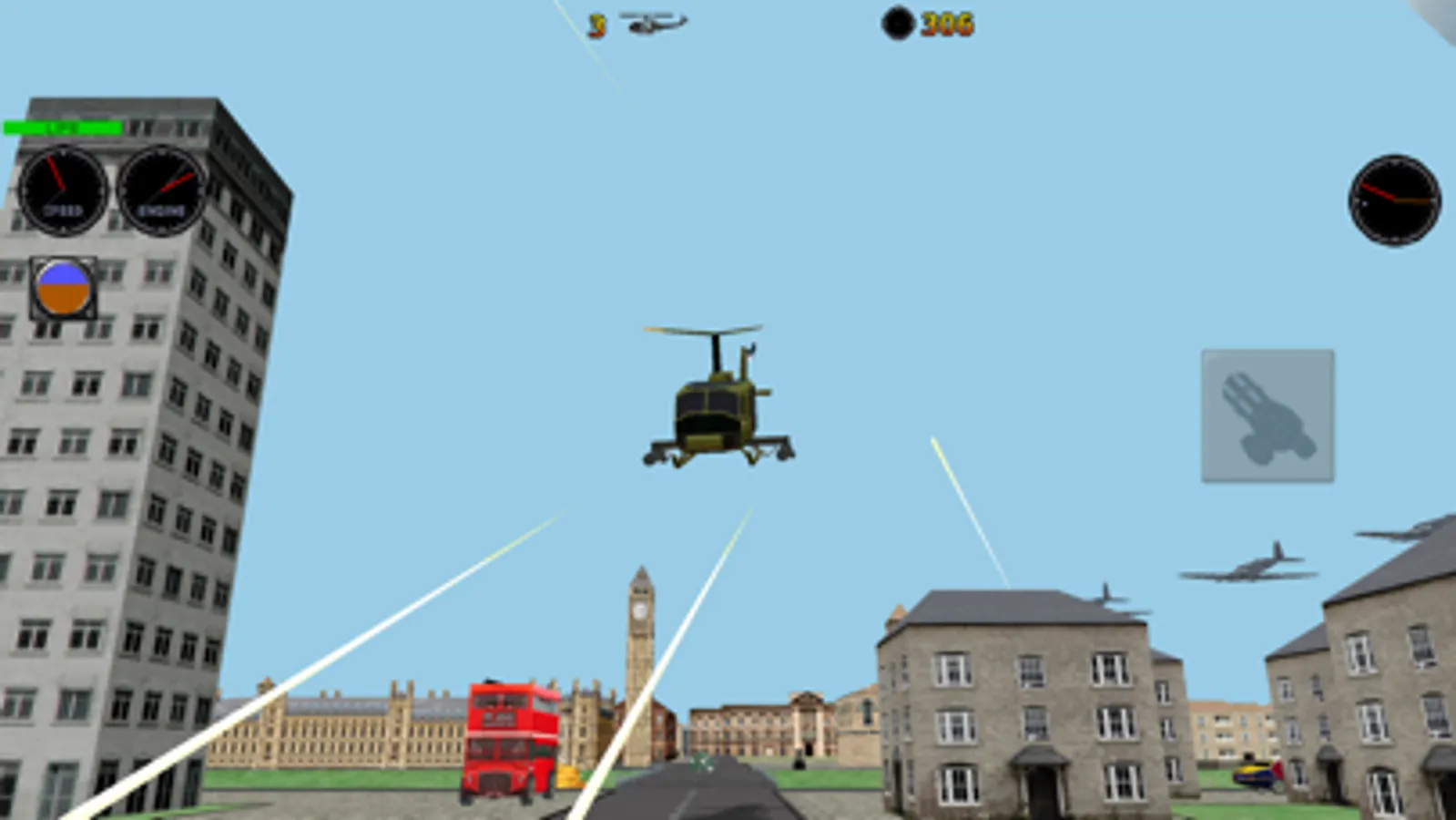 Fly over the skies of the city with a combat helicopter, in full 3D, fulfilling mission objectives.