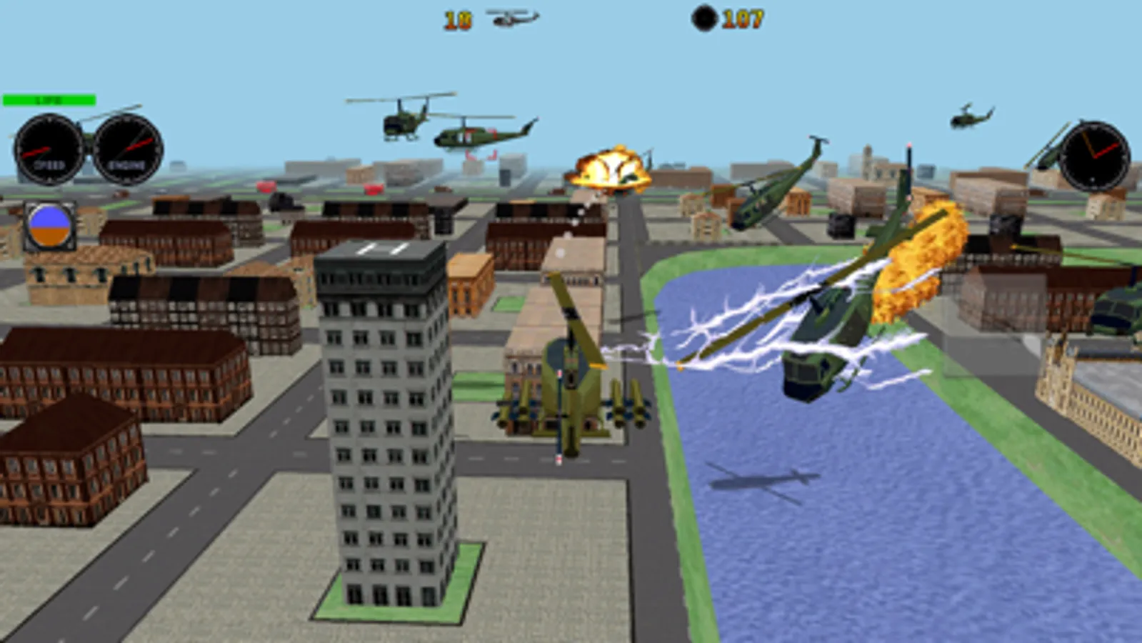 See how they fall in flames when they are destroyed by your powerful helicopter.