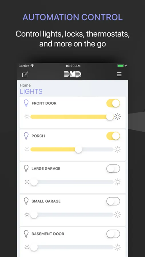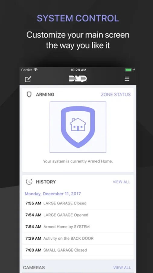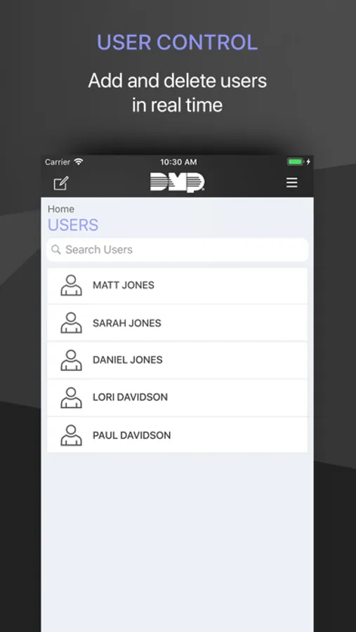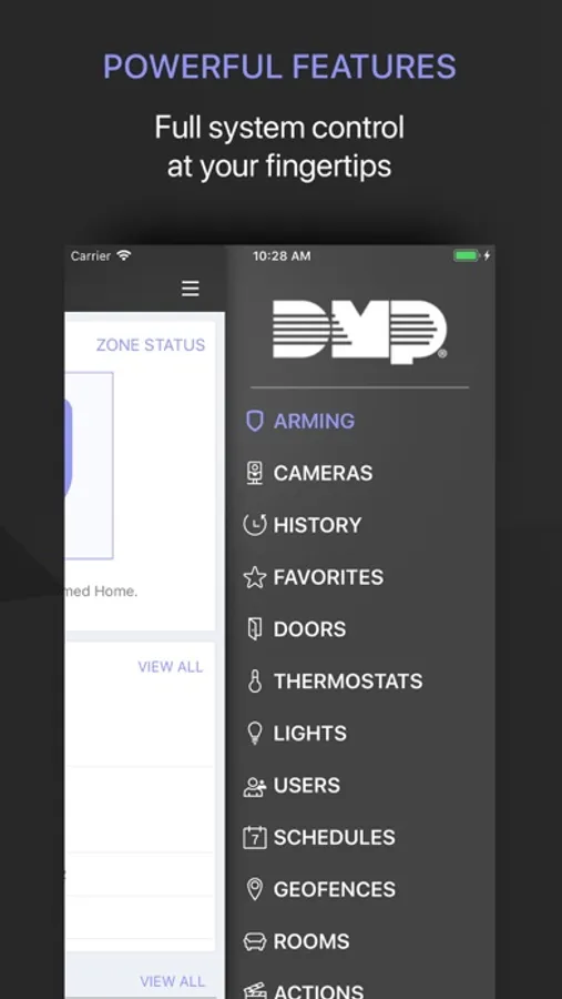The app requires a compatible control panel and connected service. For more information about upgrading your alarm system, contact your DMP installing alarm company today.
