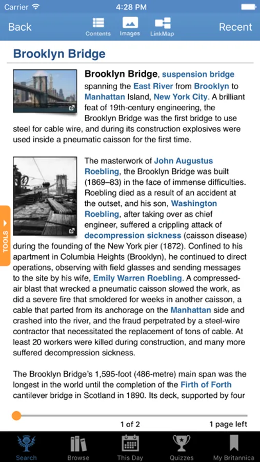 “LinkMap” lets you explore each article with a dynamic view of related topics.