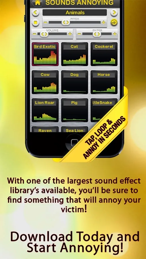 With one of the largest sound effects library's available in an app, you will be sure to find something that will annoy the heck out of your victim! Download Today and START ANNOYING!!!