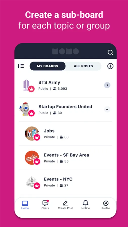 MOMO BOARD is an ultimate community app that’s free and works on both desktop and mobile platform.