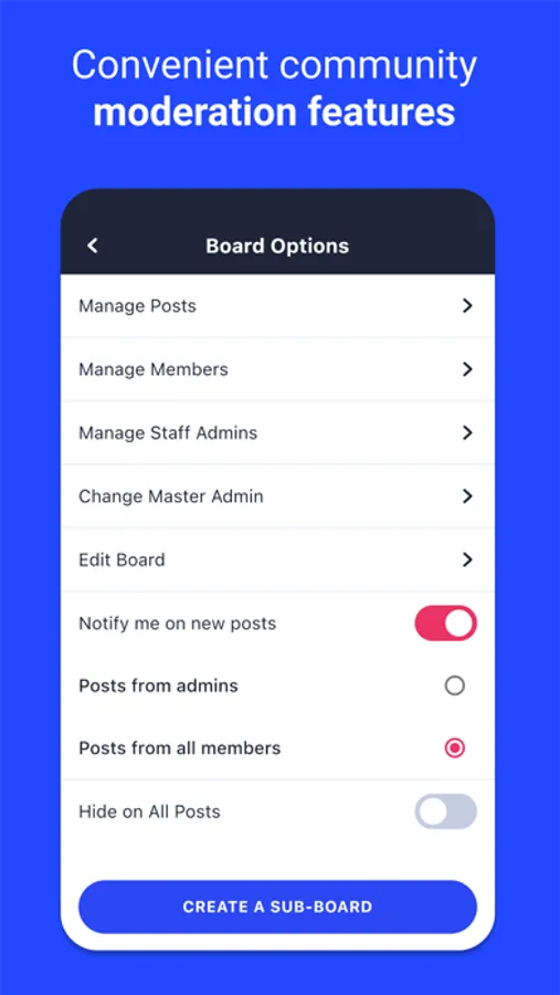 - Advanced post visibility settings (only admins and poster can see the posts)