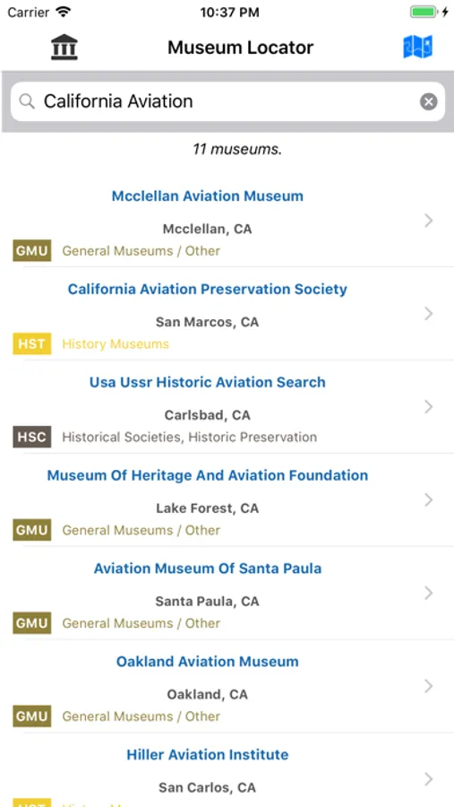 U.S. Museum Locator Screenshots