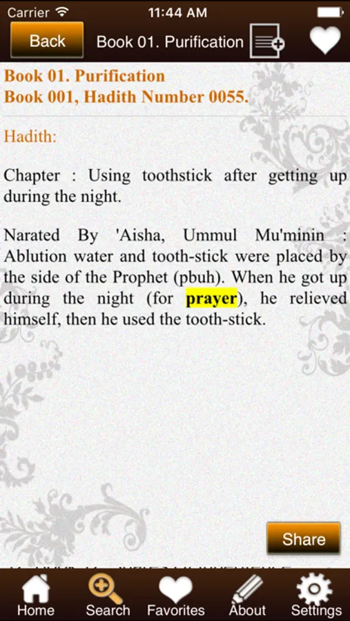 •Ability to swipe back and forth to read next, or previous Hadith.