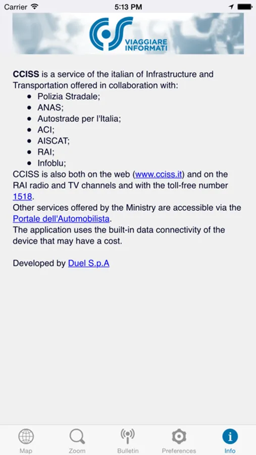 CCISS is the service of the Italian Ministry of Transportation dedicated to road safety and traffic information.