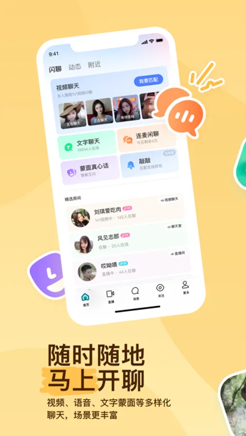 在这里,你可以随时随地的认识身边有趣的人,发现身边美好的生活,并通过丰富的动态资料和视频化的表现形式,更深入的了解他们。在这里,我们鼓励你和陌生人成为好朋友,一起探索和创造身边的美好生活。