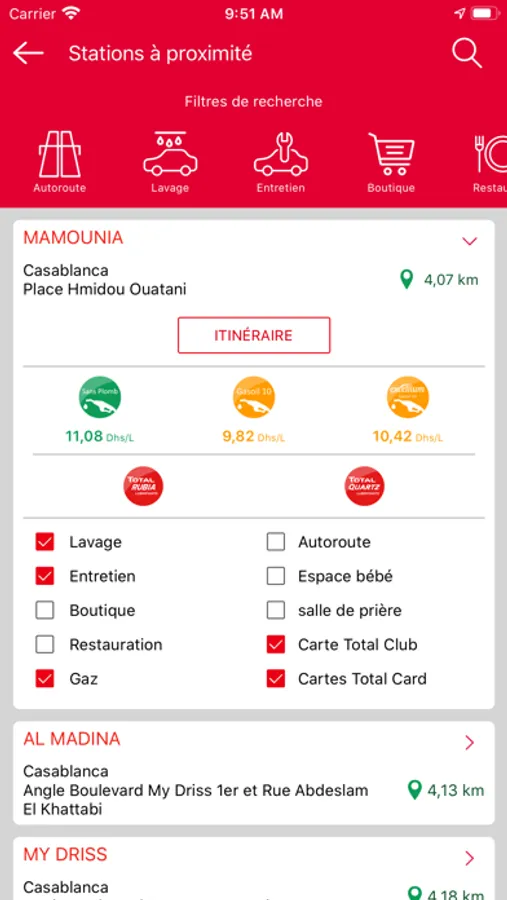 • Trouver les stations-service les plus proches de vous avec le plan, les coordonnées, les prix des carburants et les services