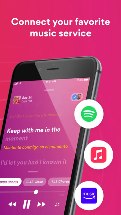 • Connect your Spotify or Apple Music account to get synced lyrics when you stream your favorite tracks and saved playlists seamlessly within the Musixmatch app.