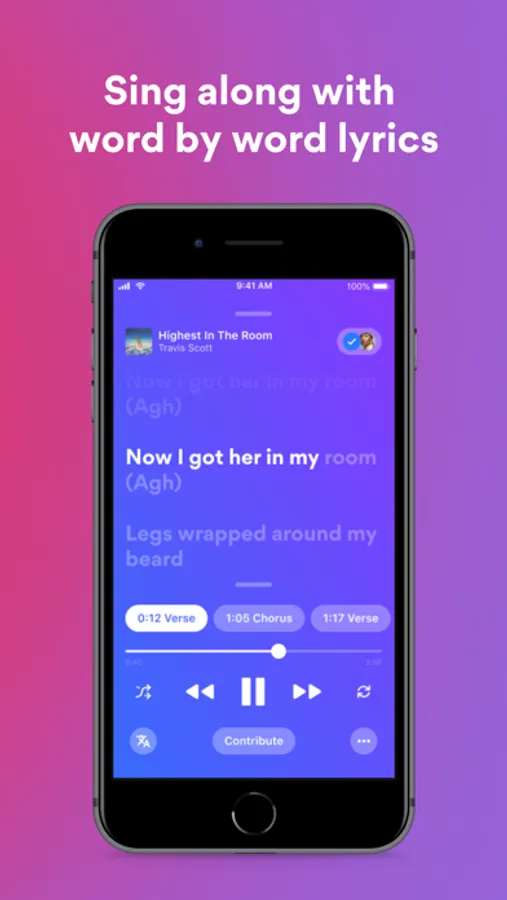 • Use the smart seek to find your favourite lyrics by easily skipping through a song using the the progress bar.